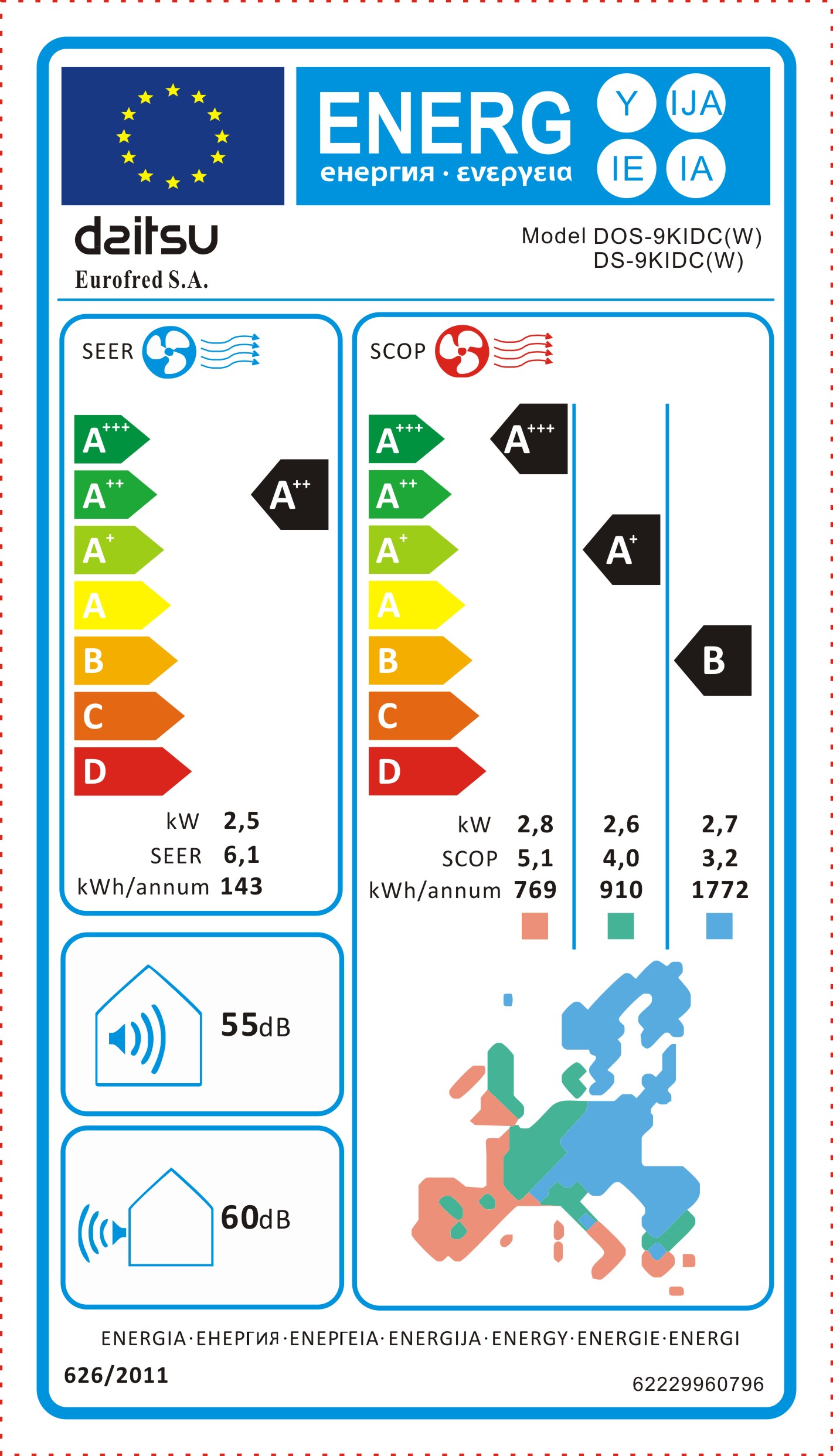 Clase energética frío / calor | A++ / A+++ |
